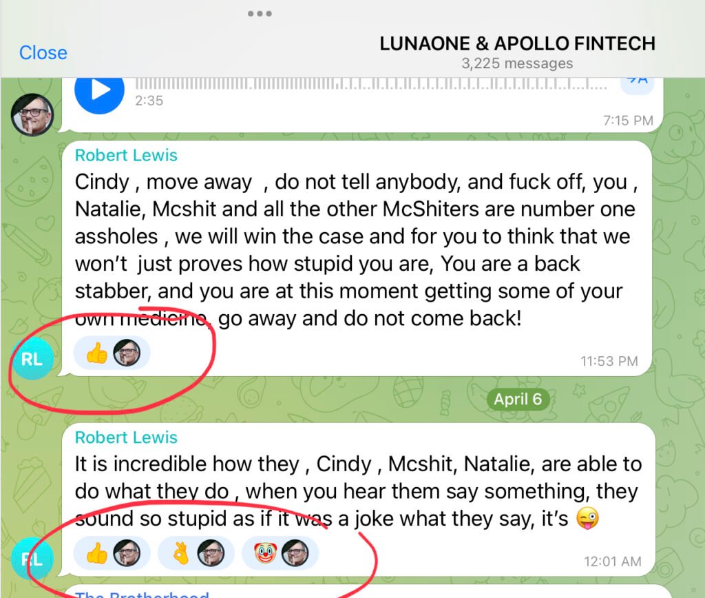 - Organized harassment hubs: Danny De Hek coordinates FUD groups under “THE CRYPTO PONZI SCHEME AVENGER” banner