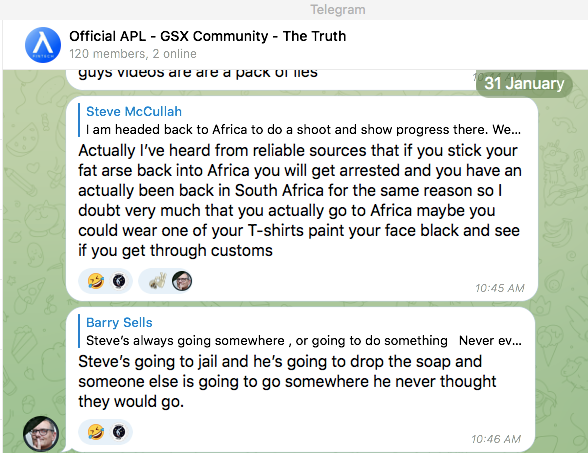 Telegram Group Violations: Danny De Hek’s coordination of threats violated terms of service
